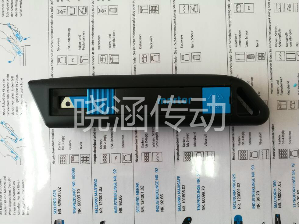 上海福名智實(shí)業(yè)有限公司,專業(yè)銷售德國(guó)原裝進(jìn)口LUTZ刀片及MARTOR安全刀具,LUTZ GmbH &Co.KG和MARTOR KG是近百年的德國(guó)專業(yè)研發(fā)生產(chǎn)刀具企業(yè). 廣泛應(yīng)用于印刷、塑料、皮革、林業(yè)、橡膠、塑料、食品、鋁箔、煙草、卷煙、包裝材料、薄膜、電線、化纖、玻纖、紡織、木工、制袋機(jī)、造紙、鋁箔、冶金等方面,并在國(guó)際上享有一定的知名度,具有品種規(guī)格齊全、切削效果明顯、安全防護(hù)性高、更換頻率低、使用壽命延長(zhǎng)等優(yōu)越的特點(diǎn)!